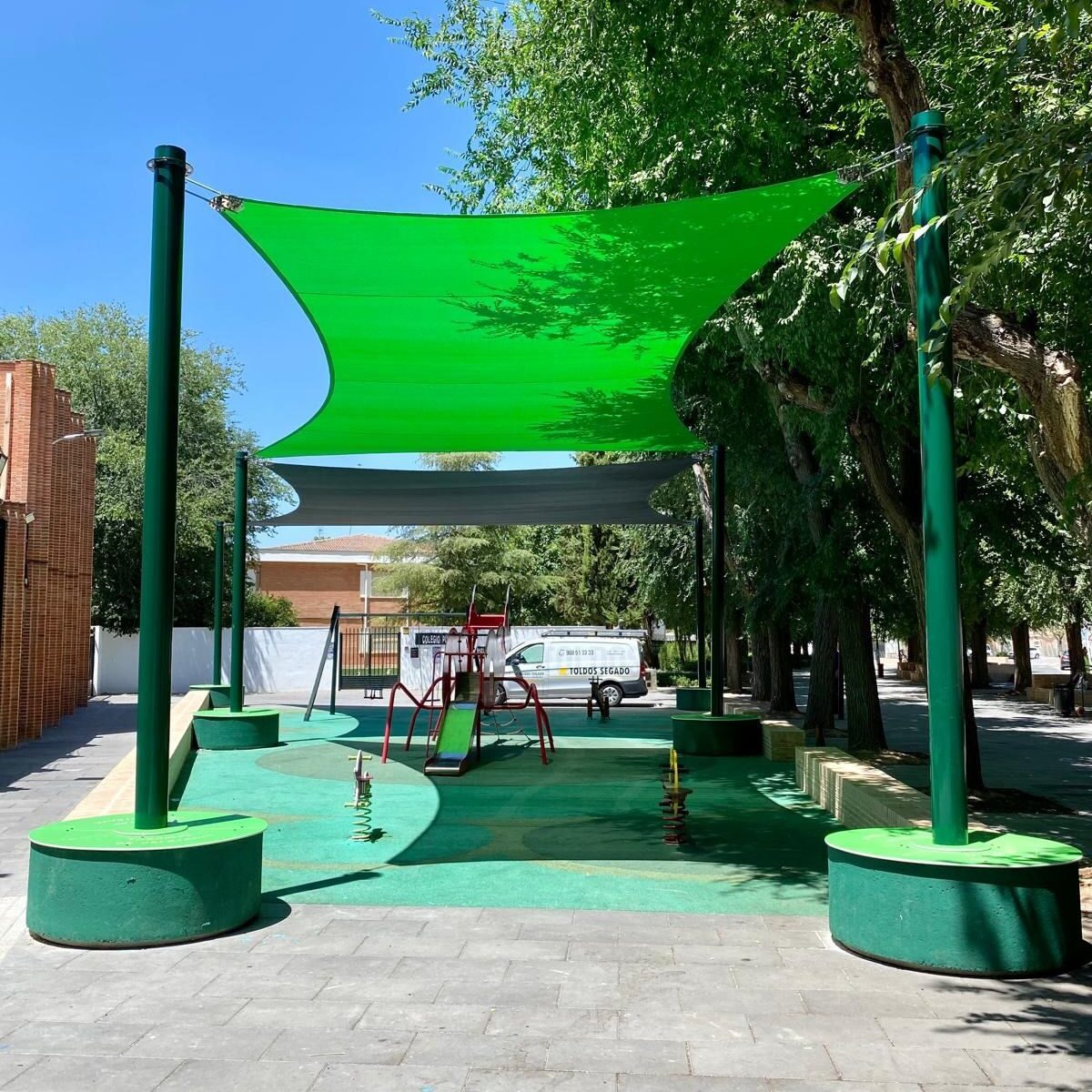 Transformación de un Parque Infantil en Torralba de Calatrava: Instalación de Dos Lonas Tensadas para Mayor Diversión y Seguridad